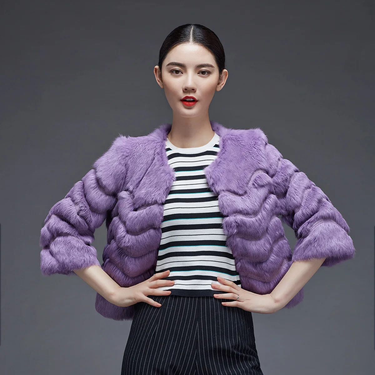 .Pictures for 2019 autumn and winter real rabbit fur hair short slim coat outerwear women new arrival wave cut embroidery O neck fur jacket